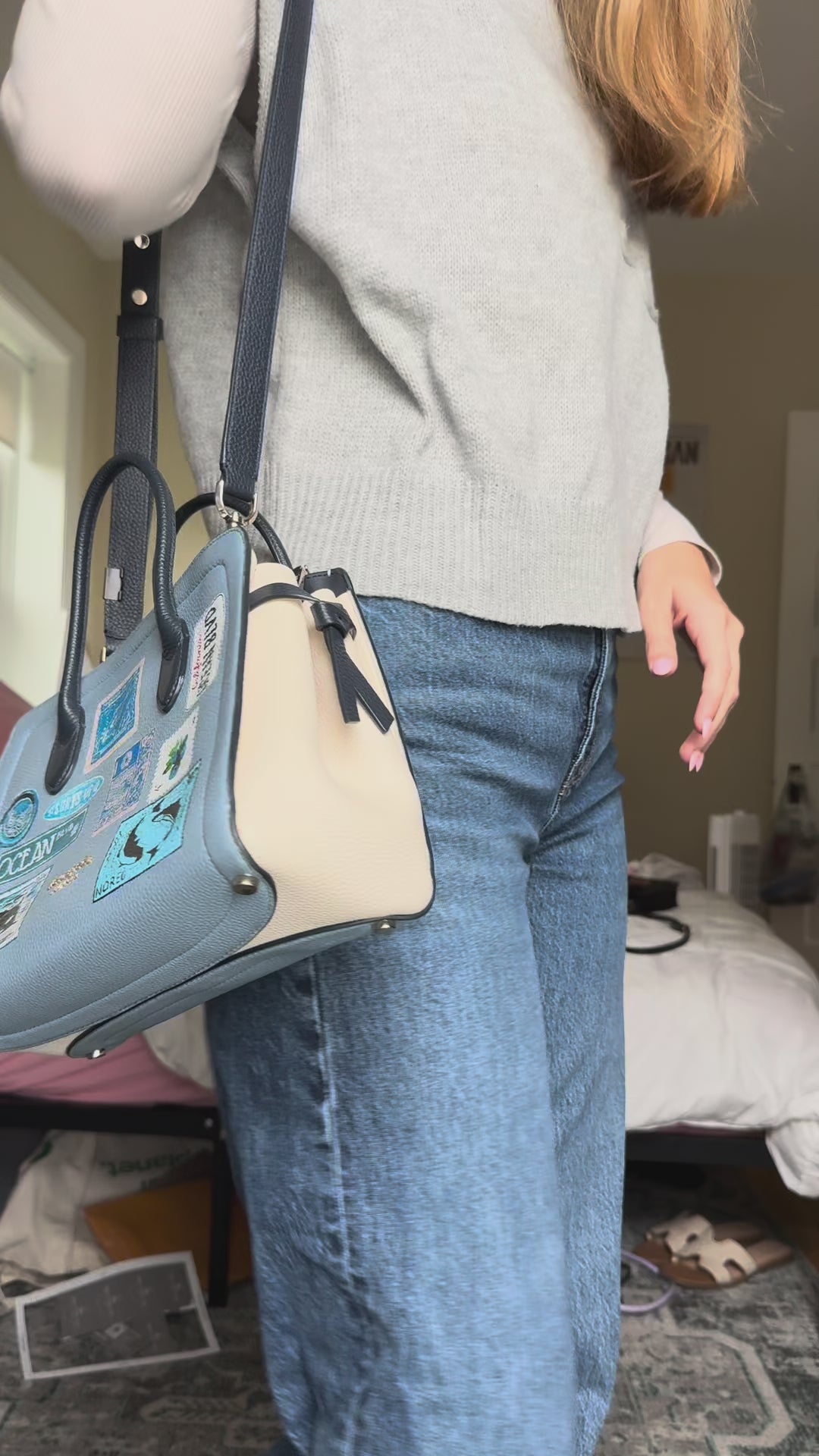 This one-of-a-kind hand-painted Kate Spade purse features a beach-themed “postage stamp” design, carefully detailed with ocean blues, palm trees, seashells, surfboards, and vintage-inspired travel stamps. Each element is painted by hand with high-quality leather-safe paint and sealed for long-lasting protection, so your bag stays beautiful for years to come.
